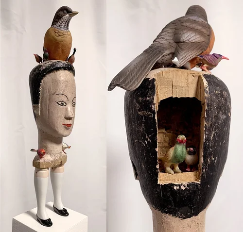 I invented a process to alter these 35mm color slides, then scanned them in high resolution and printed them on Duratrans (translucent) paper with archival inkjet inks. They are mounted with plexiglass on an LED light box I designed and sell.